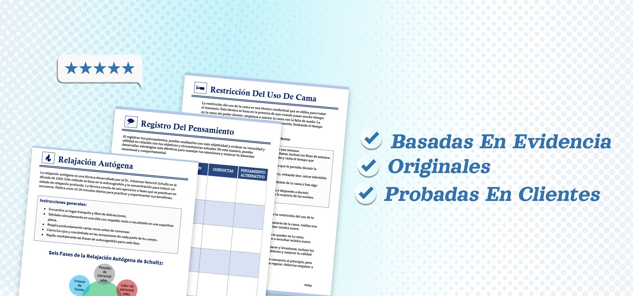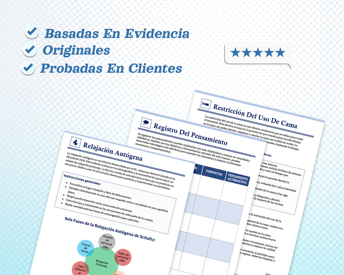Material diseñado a partir de Terapias Basadas en Evidencia, didácticas y simples que te ayudarán a mejorar tus resultados y a darle un aspecto profesional a tu marca.
